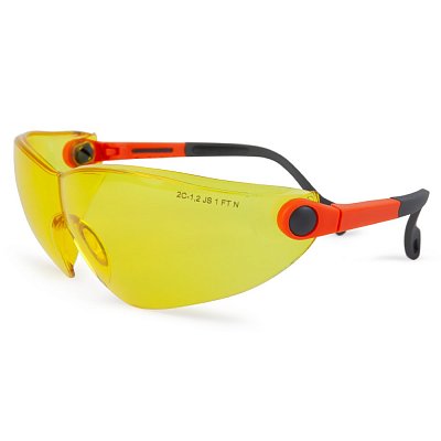 JSG1511-Y Очки защитные открытого типа с регулировкой дужек, янтарные линзы из поликарбоната можно купить оптом и в розницу по выгодной цене. Забрать товар можно самовывозом со склада-магазина "Экоджут" в Санкт-Петербурге или заказать доставку по Калининграду через транспортную компанию.